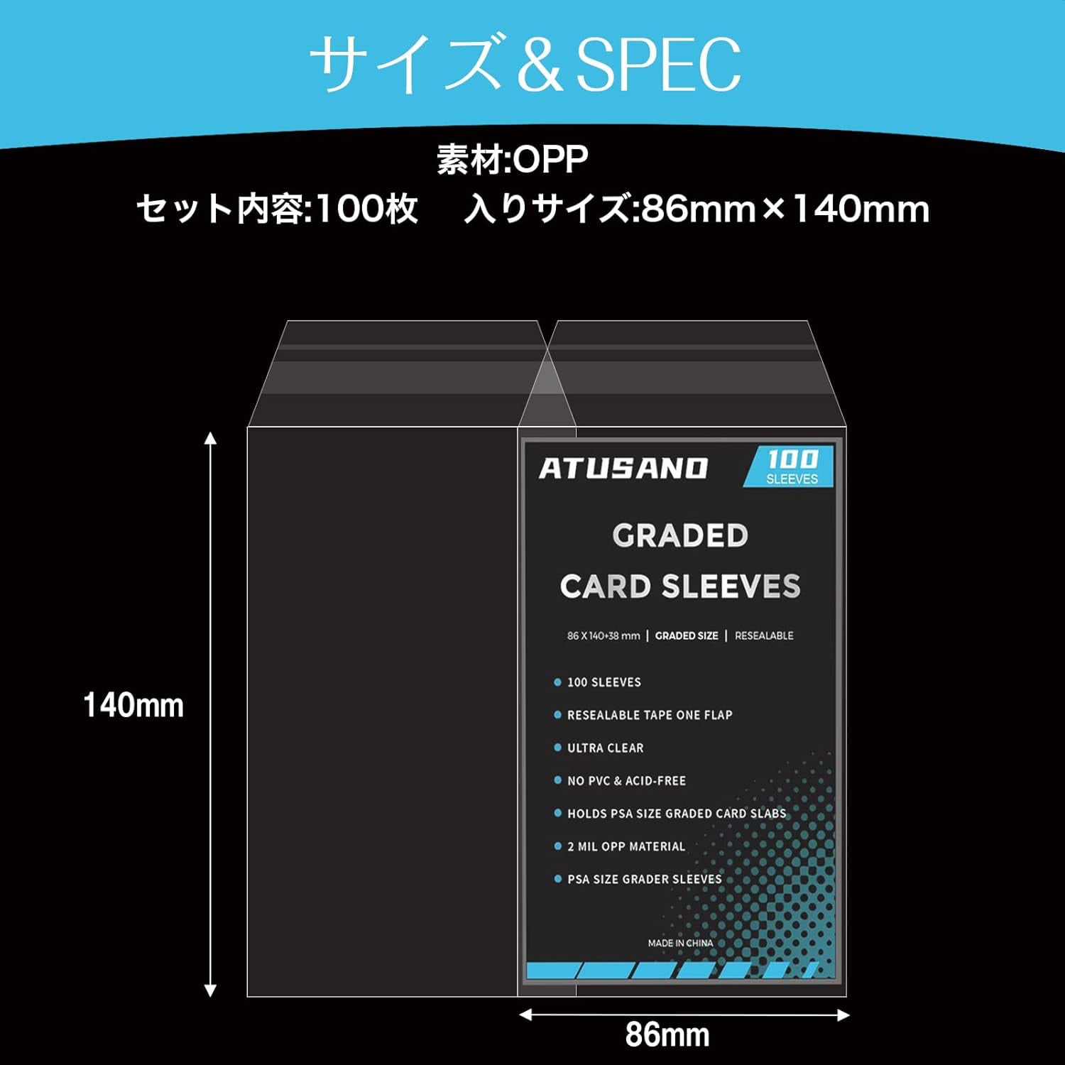 ✅【psa スリーブ 鑑定専用の仕様】psa スリーブ×100枚 サイズ:86mm×140mm